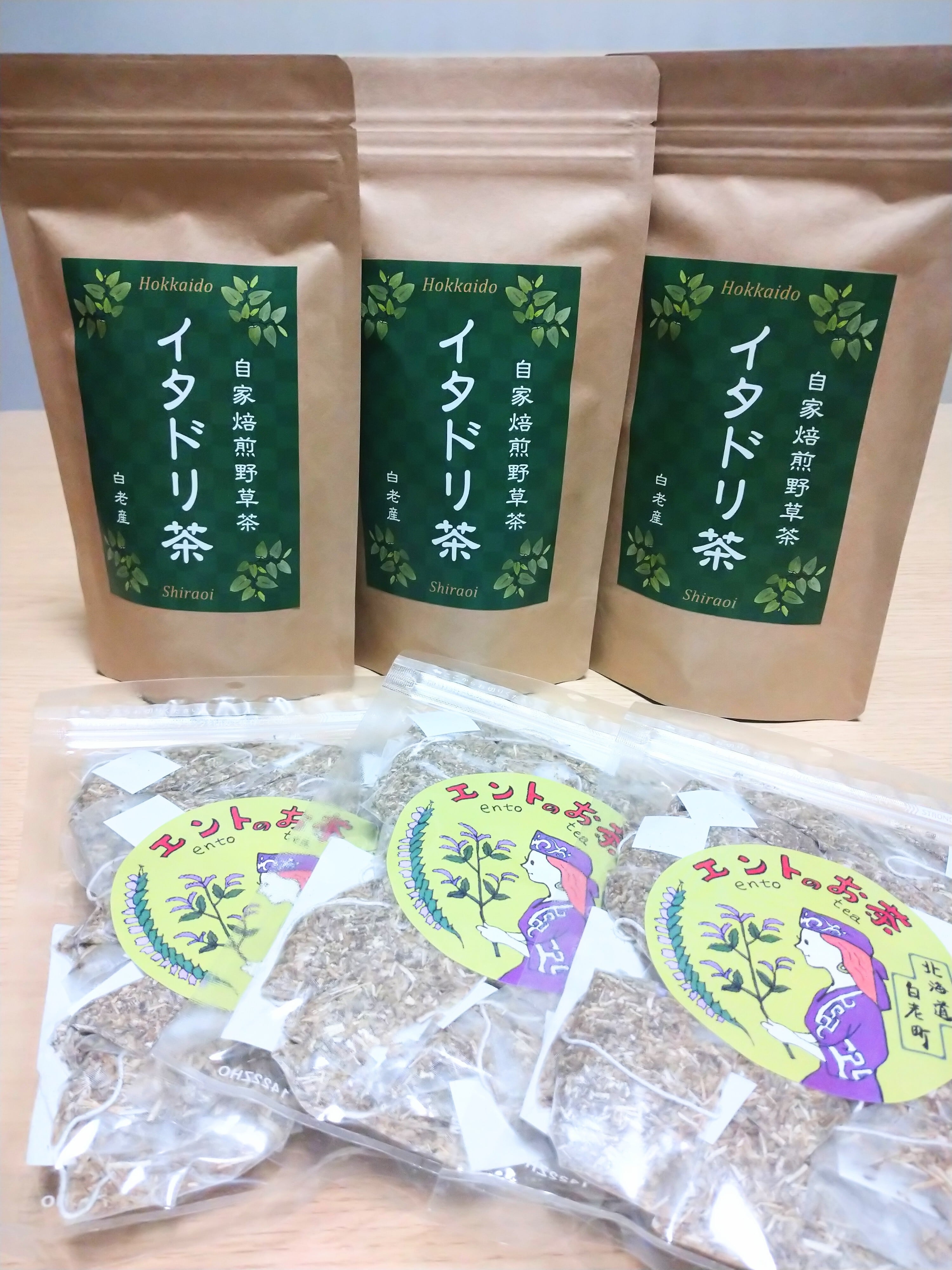イタドリ茶×3パックと、エント茶×3パックのセットです。