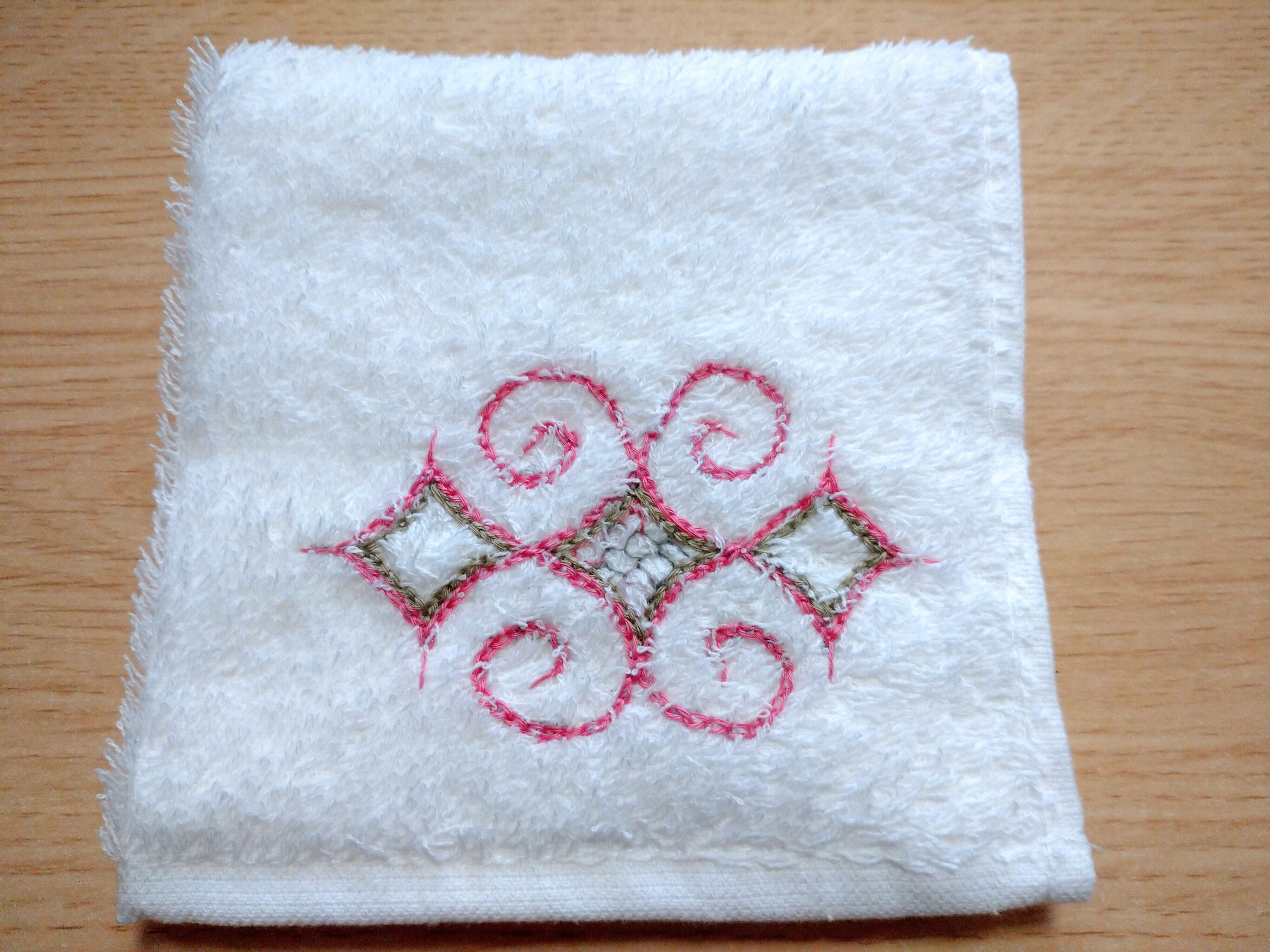 アイヌ刺繍を施したミニタオルハンカチです。